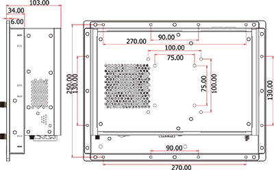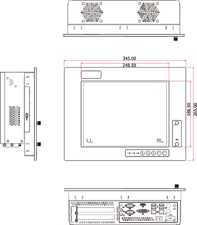 材料:铝镁合金前面板达到NEMA IP65防护等级,全钢型箱体结构 安装:嵌入式安装 电源:6~30V直流电源 面板颜色:黑色 总体尺寸:345×265×103mm(宽×高×深) 箱体尺寸:310×230×97 mm(宽×高×深) 开孔尺寸:321×241 mm(宽×高) 重量:6.5公斤