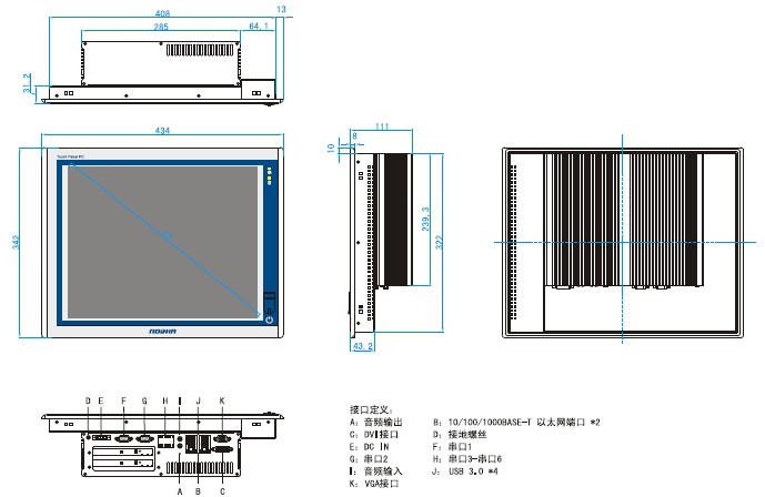 前面板:铝镁合金材质,可达到IP65防护等级 |