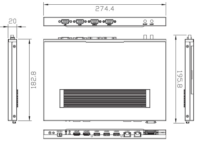■ 机器厚度只有20mm,非常适合狭小空间放置