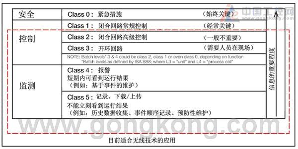 只有所有的信息使用者都能够接受变量延迟时,系统设计人员才能考虑使用无线技术—数据到达有时会延迟不到1秒,有时10秒或更久些。既然数据都有时间戳,延迟并不影响趋势的有效性和事件记录。因此在监测、趋势分析或开放控制回路应用中,延迟通常是可以接受的。但是在闭合回路控制或安全应用中延迟就不能被接受了。正因为如此,ISA SP-100委员会制定了相关的指导方针(图1)。