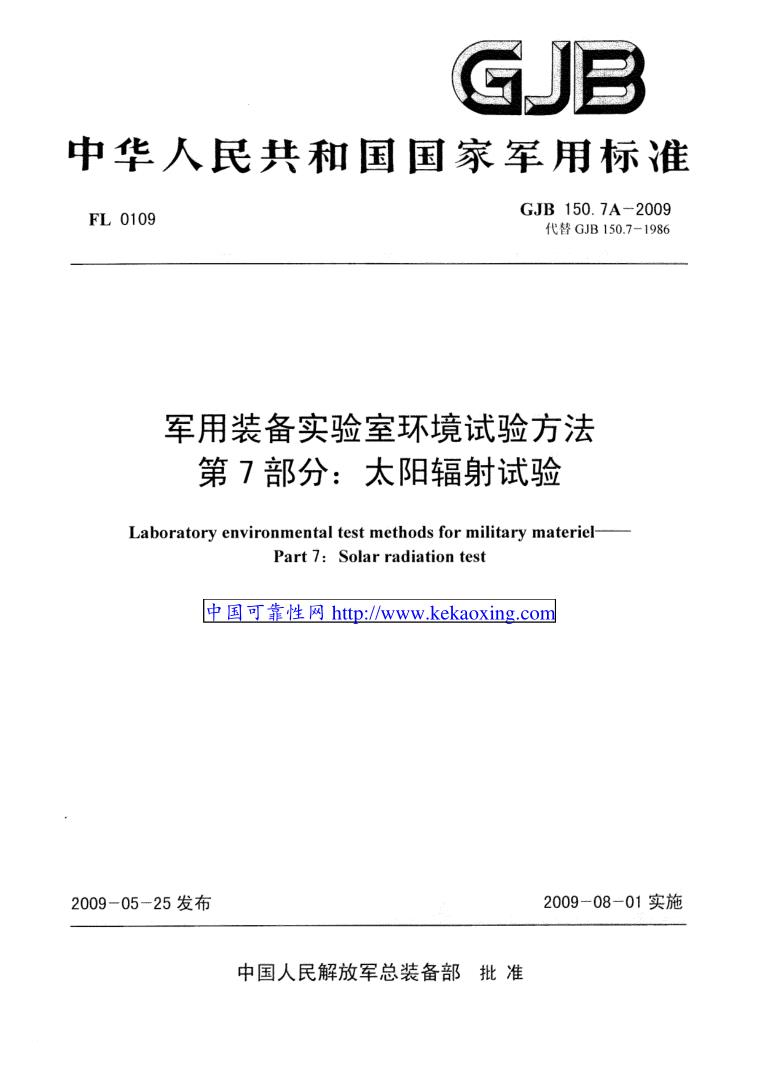 军用装备实验室环境试验方法-太阳辐射部分
