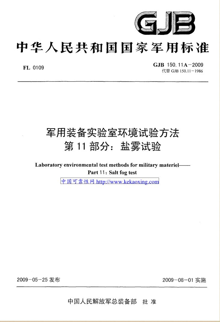 军用装备实验室环境试验方法第11部分:盐雾试验