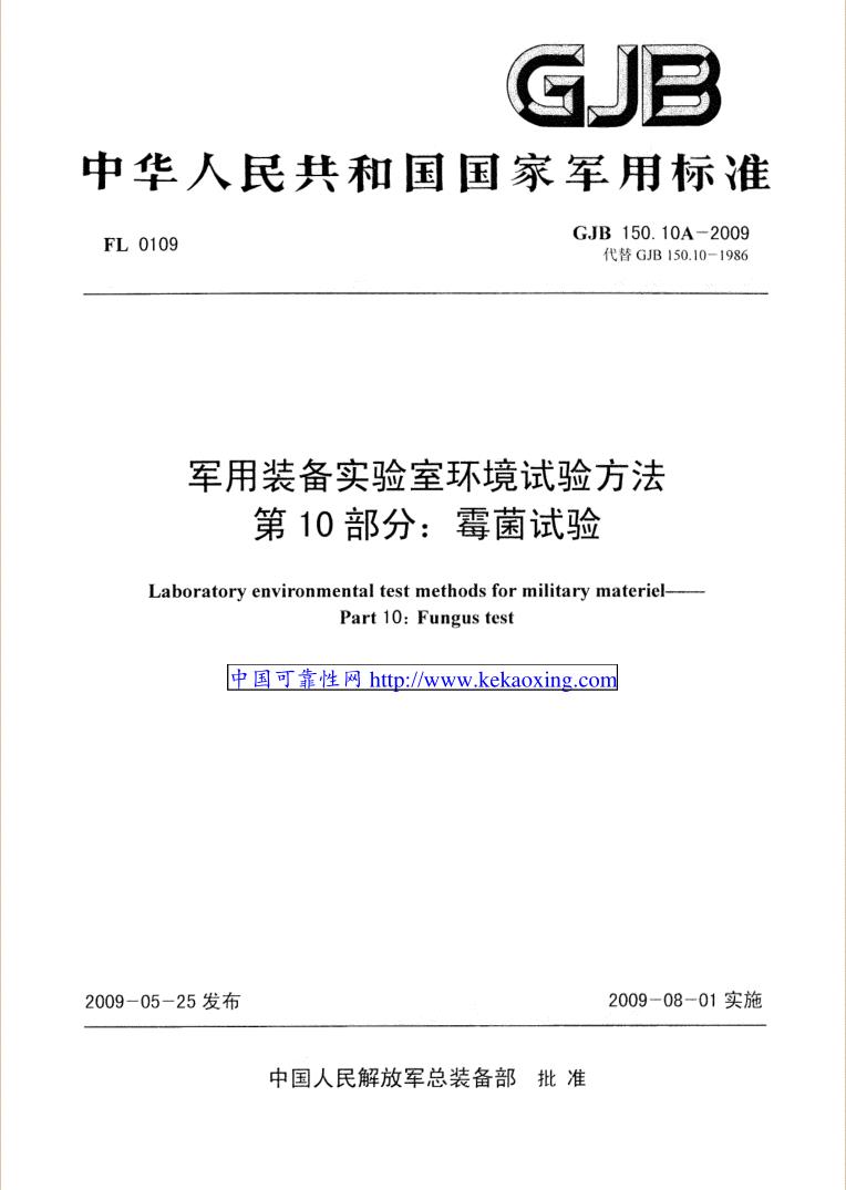 军用装备实验室环境试验方法第10部分:霉菌试验
