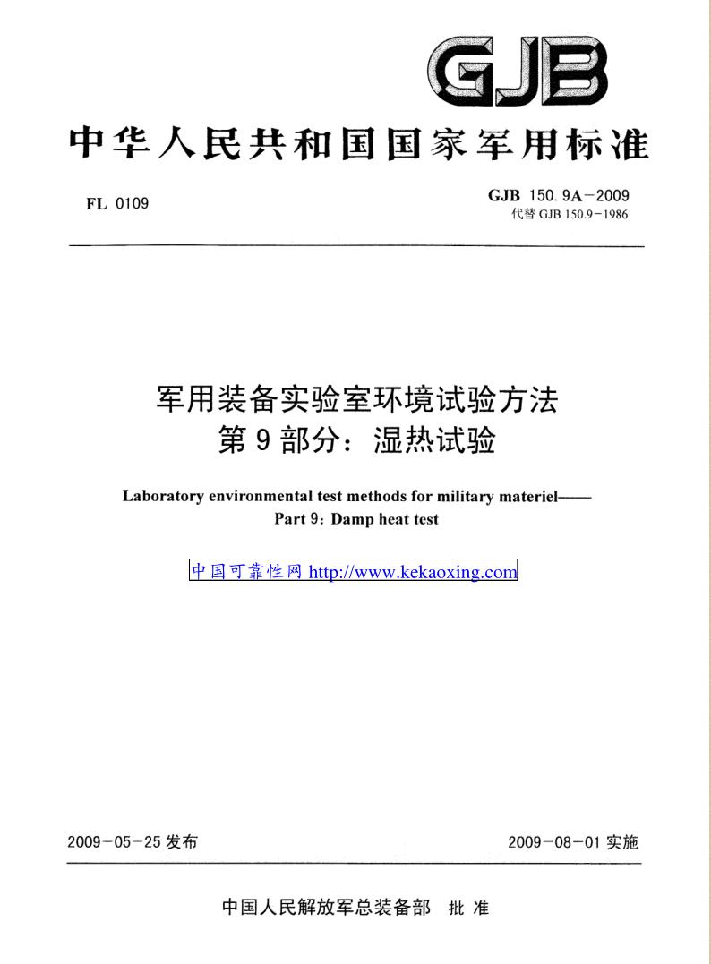 军用装备实验室环境试验方法第9部分:湿热试验