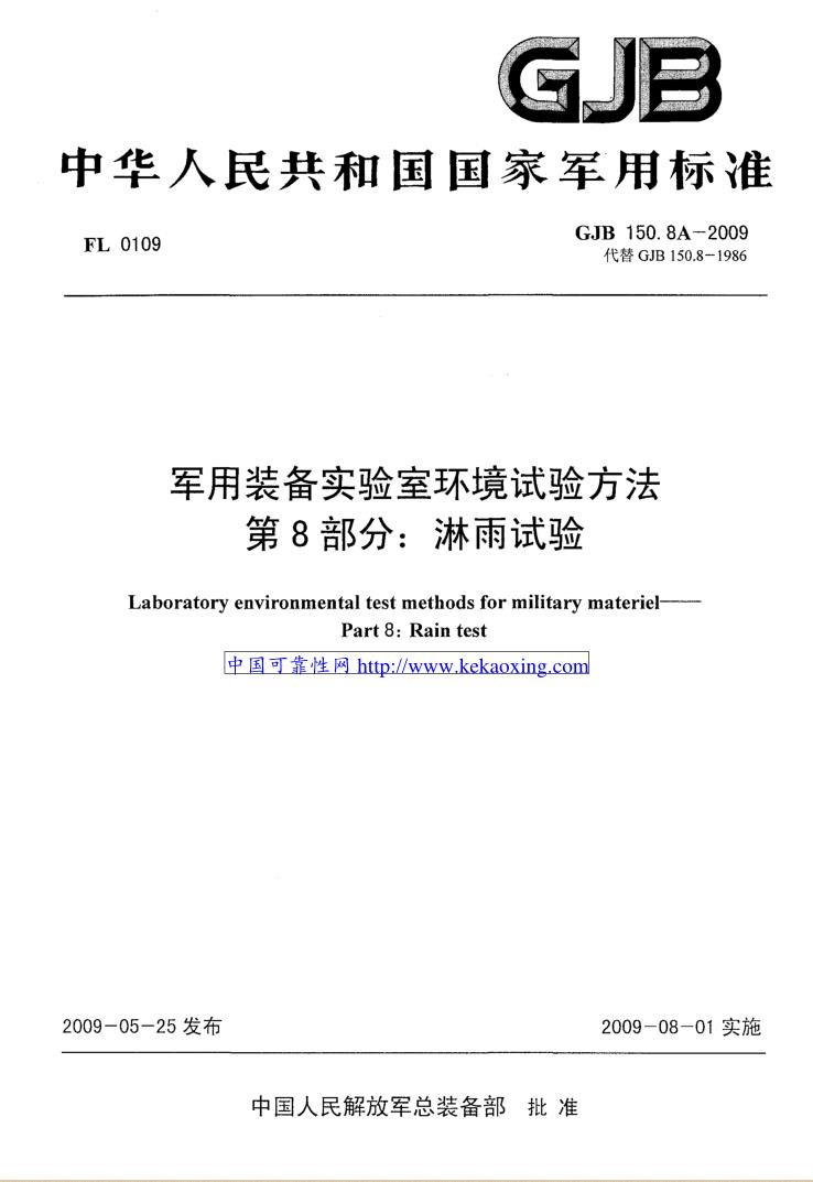 军用装备实验室环境试验方法第8部分:淋雨试验