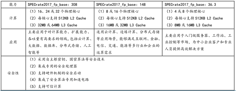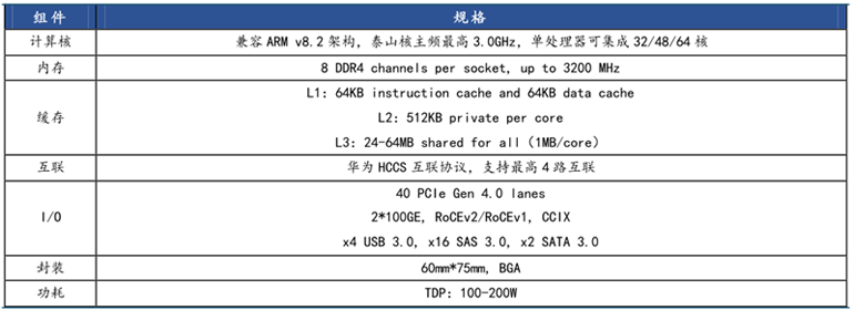 其中鲲鹏处理器基于Armv8指令集永久授权,自主研发设计处理器内核,兼容全球 Arm生态。华为围绕鲲鹏处理器打造了“算、存、传、管、智”五个子系统的芯片族,实现全场景处理器布局。当前其鲲鹏芯片族正沿着“量产一代、研发一代、规划一代”的策略持续升级产品。2019年,华为发布鲲鹏920处理器。该芯片支持Armv8.2指令集,是行业内首款7nm数据中心Arm处理器。鲲鹏920由华为自主研发,采用多发射、乱序执行、优化分支预测等多种手段提升单核性能。