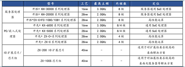 高性能服务器CPU产品线统一以飞腾腾云S系列进行命名,高性能桌面CPU产品线以飞腾腾锐D系列进行命名,高端嵌入式CPU产品线统一以飞腾腾珑E系列进行命名。