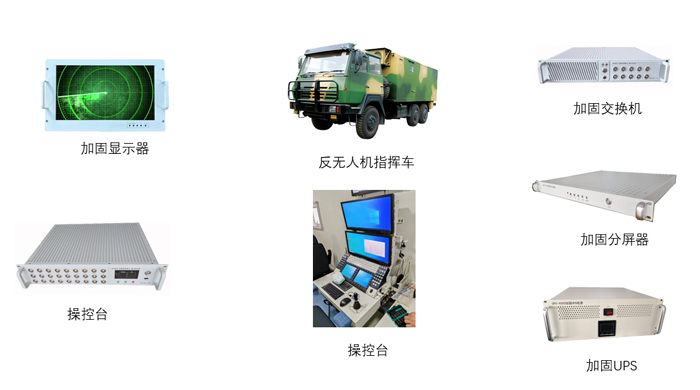操控台由加固计算机 加固交换机 加固显示器 加固分屏器 加固UPS组成