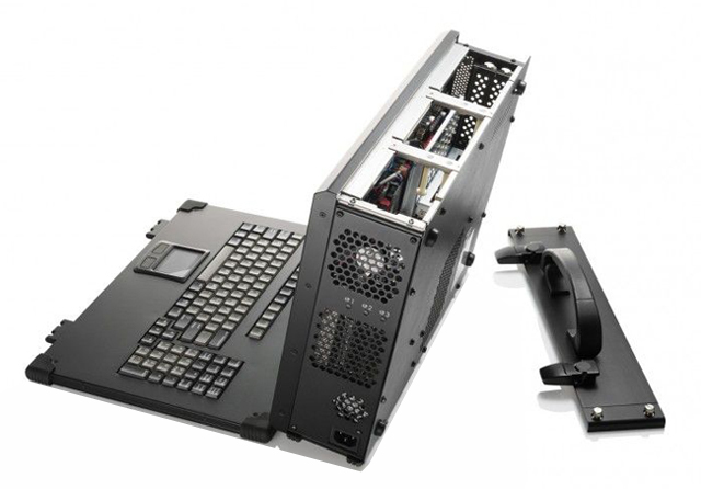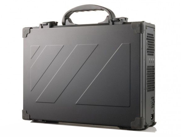 箱体结构:双层铝镁合金板,表面阳极氧化处理 抗震:机箱四角共有八个减震橡胶垫 键盘四角有四个橡胶垫 机箱内部有硬盘抗震橡胶垫 安装方式:便携式 电源:交流 220V 600W 颜色:工业黑色 总体尺寸:315mm x 417mm x 112mm(H x W x D) 重量:9.5kg