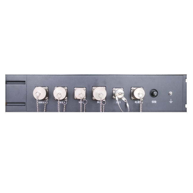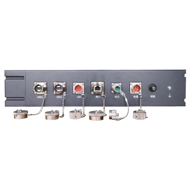 网口:2个10~1000M 网口 航插 USB:2 x USB 3.0 航插 USB:1 x USB 2.0 防水帽,用于调试 光纤口:万兆光口 航插 电源口:1个 航插 显示口:1x VGA 航插 |