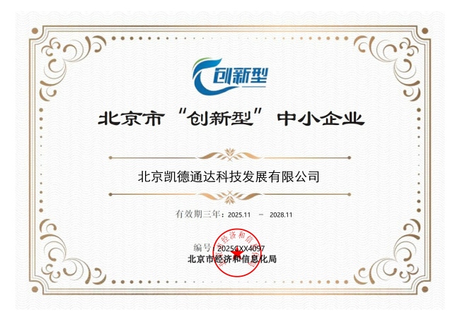 近日,喜讯传来!经过北京市相关部门的严格评审与核查,北京凯德通达科技发展有限公司凭借扎实的创新实力、持续的研发投入及良好的发展潜力,成功斩获北京市“创新型中小企业”认定证书,正式跻身北京市优质中小企业梯队。这一荣誉的取得,不仅是政府部门对公司创新发展成果的高度认可,更标志着公司在科技创新驱动高质量发展的道路上迈出了坚实且重要的一步。