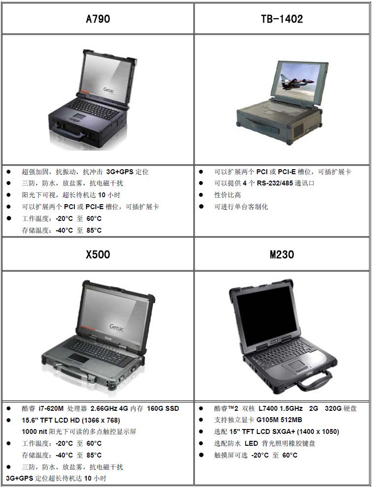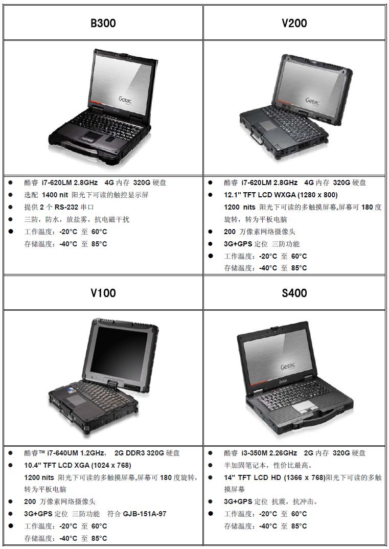 以下产品为两个厂家GETAC和松下。 GETAC 的产品有A790 M230 X500 B300 V200 V100 S400