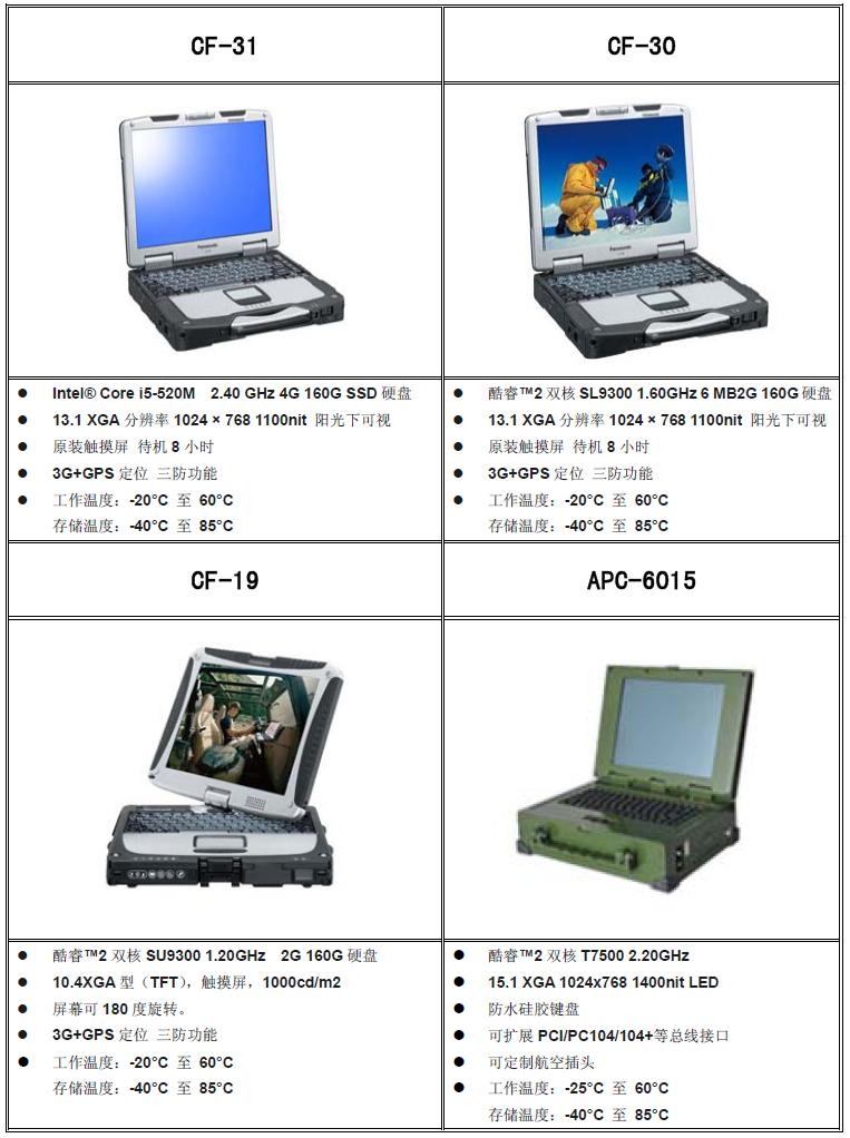 我公司提供全系列的军用加固笔记本,都为原装进口,总共10个产品类别。